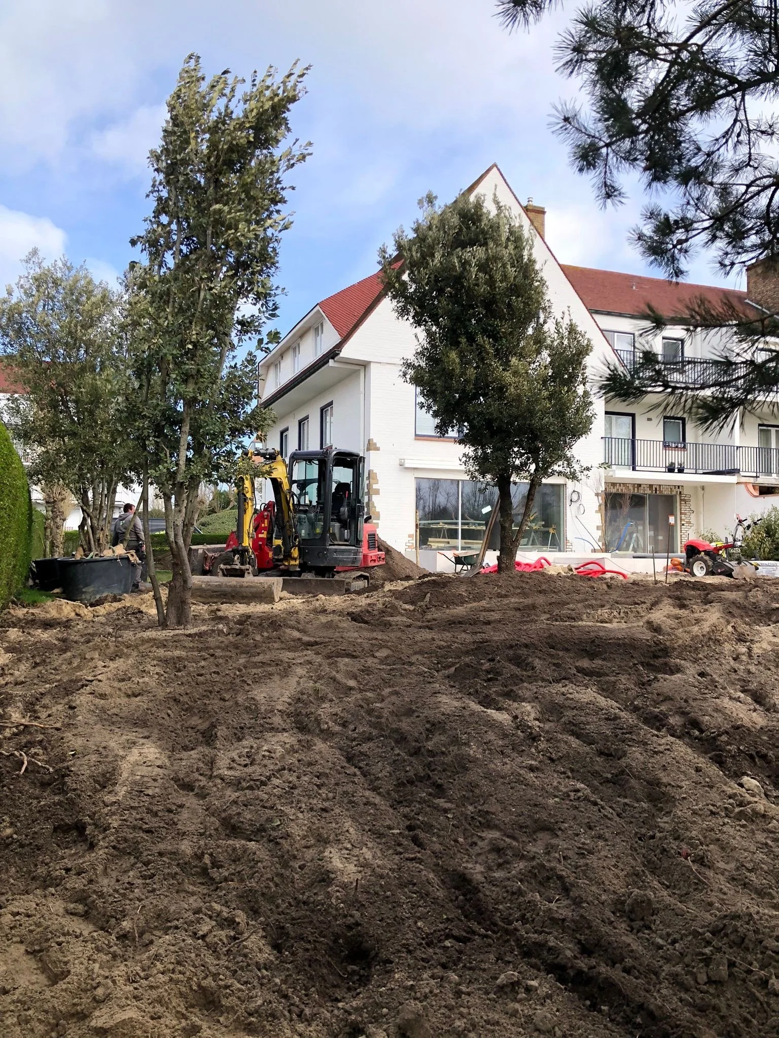 Eens deze fase afgerond is, gaan we verder met de eigenlijke grondwerken. We breken de grond diep genoeg op om harde lagen te verwijderen en zorgen ervoor dat de vruchtbare aarde bovenaan komt. Vervolgens worden de nodige grondverbeteringsmiddelen en voedingsstoffen in de bodem ingewerkt.